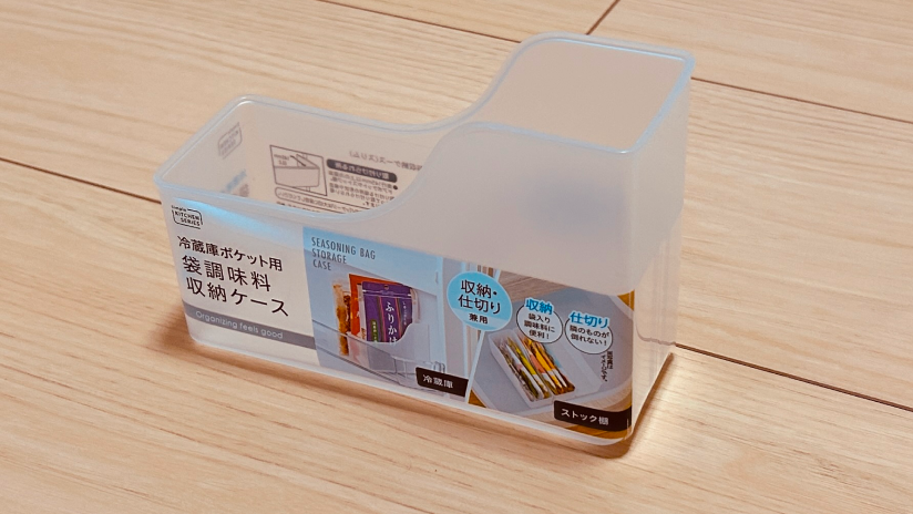 セリアで販売されている冷蔵庫ポケット用 袋調味料収納ケース。